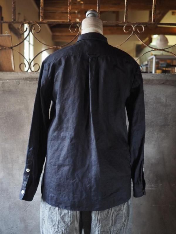 Sa-Rah定番のシャツです。ボタンが二つ並んだコンパクトな襟は、立てて着ることも出来ます。