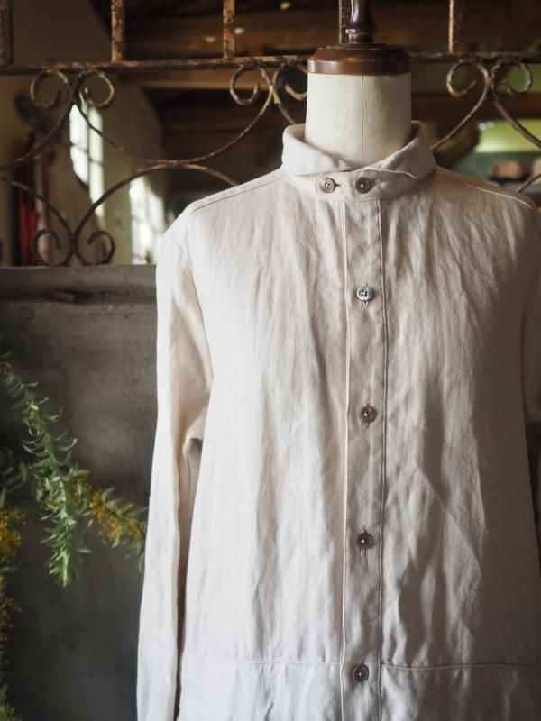 コンパクトでまあるく小さな襟のワンピースです。スッキリとブラウス感覚のトップに、腰で切り替えのタック。