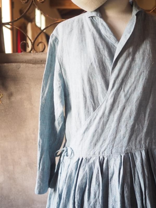 ウエスト下からダブルタックになったスカートの衿つきカシュクールワンピースです。たっぷりの生地のスカート部分ですが、ダブルタック仕上げで落ち感あるスッキリとしたラインです。