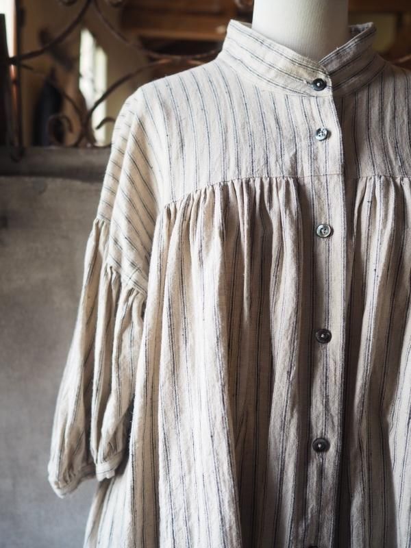 こちらは、味わいのあるコットンリネンストライプ。ナチュラルでスッキリとしたストライプは、コーディネートのアクセントになります◎