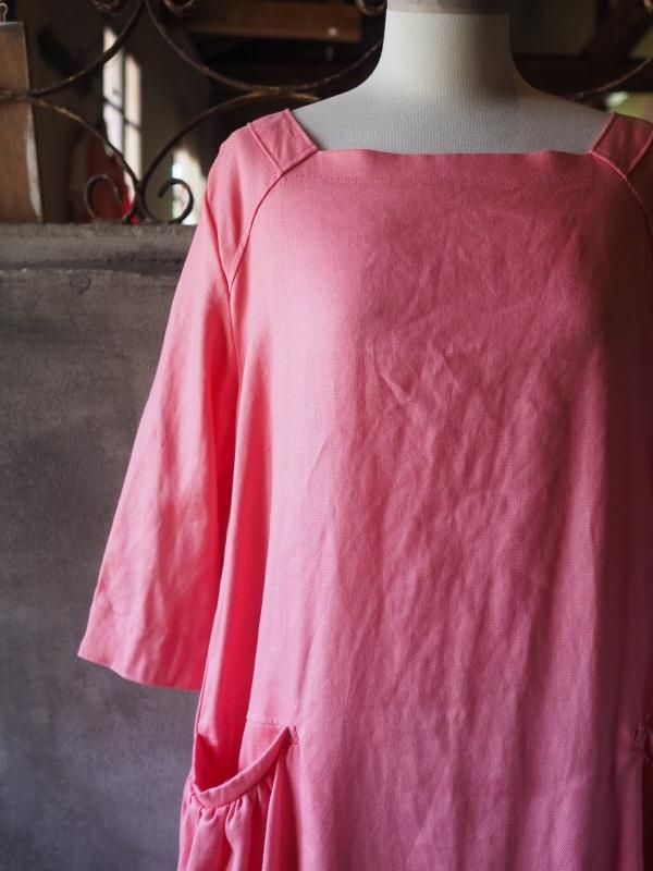 ギャザーがたっぷり入ったポケットがポイントのワンピースです。タプタプのポケットラインはふんわりとしていますが、