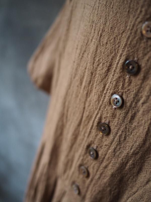 背中にはアクセントとして貝ボタンをずらりと並べています。ボタンを付けたままで着用可能。
