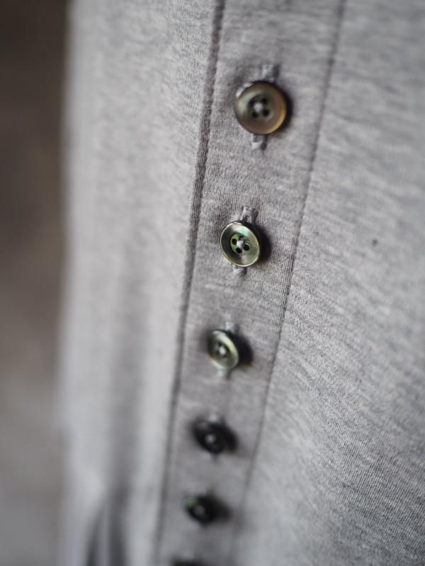 背中にはアクセントとして貝ボタンをずらりと並べています。ボタンを付けたままで着用可能。