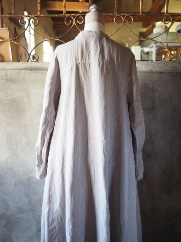 前後で着ることができるワンピースです。首周りは、ゆるりとスタンドネックで仕上げました。