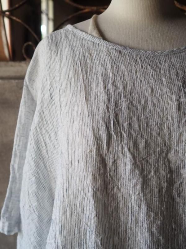 透け感のあるリネンガーゼ生地のプルオーバーです。ザブザブと洗うことのできるリネンガーゼですので、日常にストールを身体にまとうようにフワリと羽織る事ができます。
