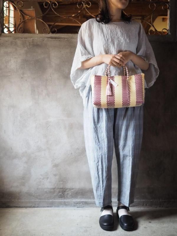 メルカドバッグ Letra×halオリジナルストライプ クリーム・メタリックピンク【SHORT XS】