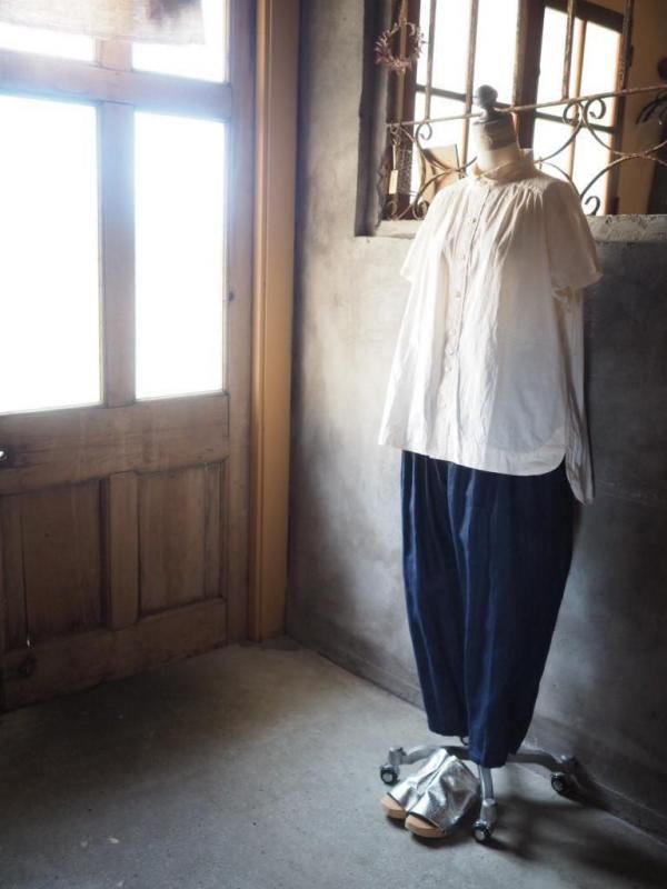 男女兼用のコクーンラインパンツです。たっぷりとしたヒップ幅は、まあるい形でもダボつかず、足首に向けてすっきりと履いていただけます。