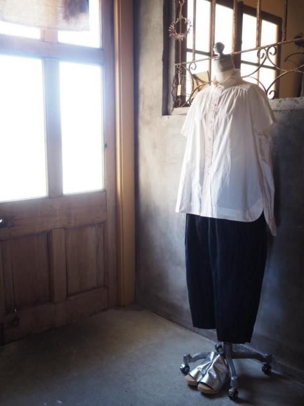 男女兼用のコクーンラインパンツです。たっぷりとしたヒップ幅は、まあるい形でもダボつかず、足首に向けてすっきりと履いていただけます。