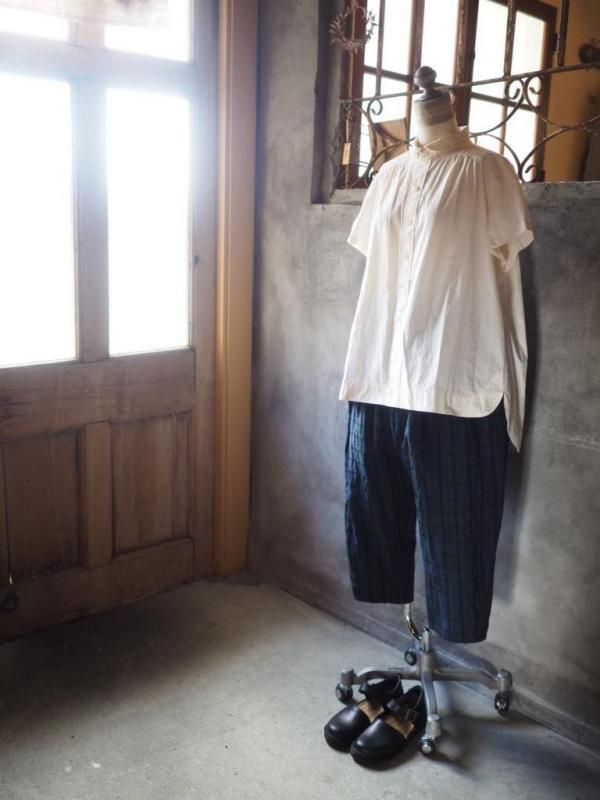 男女兼用のコクーンラインパンツです。たっぷりとしたヒップ幅は、まあるい形でもダボつかず、足首に向けてすっきりと履いていただけます。
