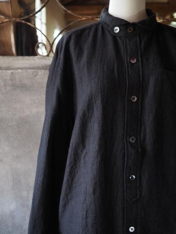 Sa-Rah定番の男女兼用シャツです。ボタンが二つ並んだコンパクトな襟は、立てて着ることも出来ます。