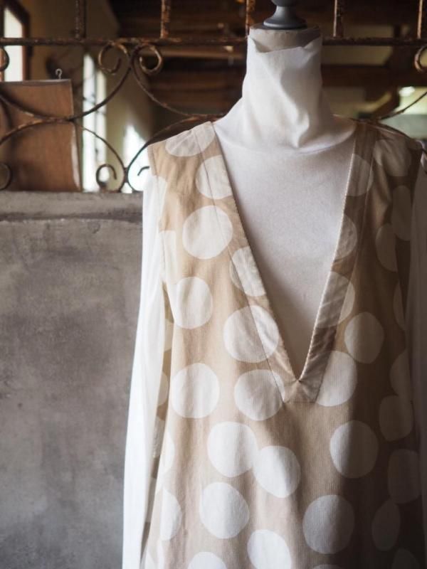 深く開いたブイネックラインは、インナーのお洋服やワンピースに重ねることができるので、レイヤードスタイルとしておしゃれに着こなすことができます。